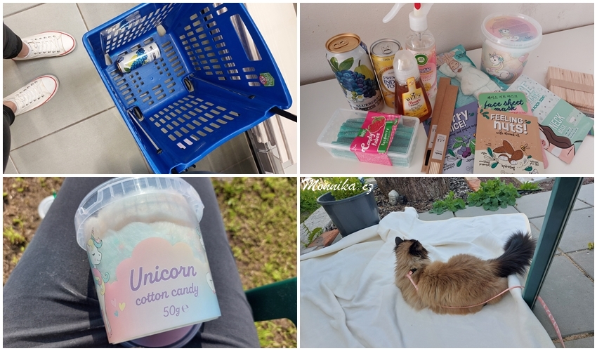 Na konci května jsme vyrazili s mamkou na nákupy do Actionu, kde nikdy předtím nebyla. Jako vždycky jsem si i já odnesla nějaké drobnosti pro radost. Třeba tuhle cukrovou vatu, kterou tam měli jen za nějakých třicet korun. Byla moc dobrá, ale zas mi ta cukrová nálož na dlouhou dobu stačila. No a nezapomněli jsme na venčení Conny, která si s námi užívala chvíle na terase.